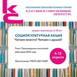 Социокультурная акция «Читаем вместе! Читаем с душой!» по теме «Произведения писателей-юбиляров и книги-юбиляры 2024 года» проводится с участием учащихся 05-18 лет в заочной форме 04-15 апреля на базе своих образовательных учреждений или в семье.