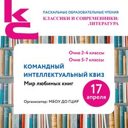 Командный интеллектуальный квиз «Мир любимых книг» проводится очно для учащихся 2-4 классов и 5-7 классов  17 апреля.