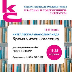 Интеллектуальная олимпиада «Время читать классику» проводится 11-25 апреля для учащихся 8-11 классов на дистанционной платформе сайта МБОУ ДО ГЦИР.