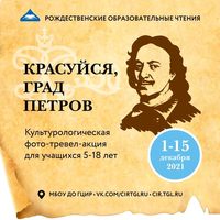 Культурологическая фото-тревел-акция «Красуйся, град Петров!» проводится с 01-15 декабря 2021 г. в заочном формате. Участниками акции стали 45 учащихся 05-18 лет из 20-и образовательных организаций (школы №№ 1, 18, 21, 25, 26, 37, 41, 58, 59, 60, 66, 71, 79, 86, 89, 90, Королева, Лада; детский сад №№ 56; МБОУ ДО ГЦИР).
