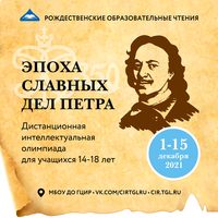 Дистанционная интеллектуальная олимпиада «Эпоха славных дел Петра» проводится с 01 - 15 декабря 2021 г. для учащихся 14-18 лет.
