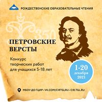 Конкурс творческих работ «Петровские вёрсты» проводится с 01 до 20 декабря 2021 г. в заочном формате. Участниками могут стать учащиеся 05-18 лет.